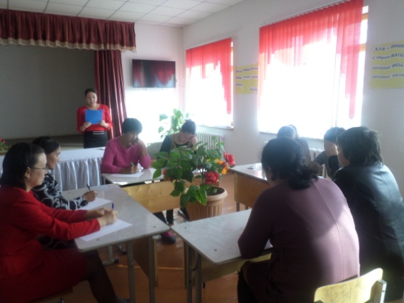 Жиналыстың екінші бөлімінде өзін-өзі тану пәнінің мұғалімі Слеумұханова Назымгүл сөз алып, «Өзін-өзі тану пәні-рухани-адамгершілік тәрбие берудің ошағы» екендігіне тоқталып өтті.Ата-аналармен «Шашу» тренингін ұйымдастыра отырып, «Арман», «Сенім», «Үміт» топтарына бөлді.Ата-аналар назарына «Анашым,рахмет!» бейнеролигін жіберіп,сол арқылы бейнероликтегі көрсетілім бойынша өз түйген түйіндерін ортаға салып,өз тақырыптарын қорғады.Осы топтағы өз белсенділіктерімен көзге түскен Тұяқова Мәншүк,Тұрғанбаева Гүлмира,Ермекова Тұрсын сынды ата-аналар марапатталды. Алға қарай ата-аналармен жұмыстар жинақ етіп шығару ұсынылды.