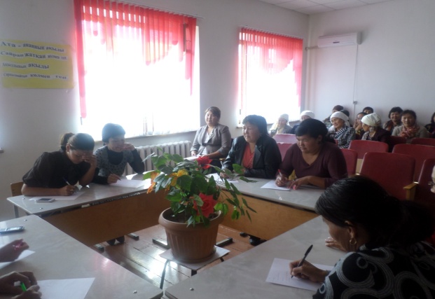 Жиналыста «Отбасы тәрбиесі мен мектептегі тәрбиенің үйлесімділік табуы» тақырыбында мектептің тәрбие ісі жөніндегі орынбасары Қоржықбаева Самал баяндама жасады.Ата –аналар комитетінің төрайымы Рахымғалиева Айгүл мен ата-ана Дүйсенғалиева Дәметкен өз ойларын ортаға салды.