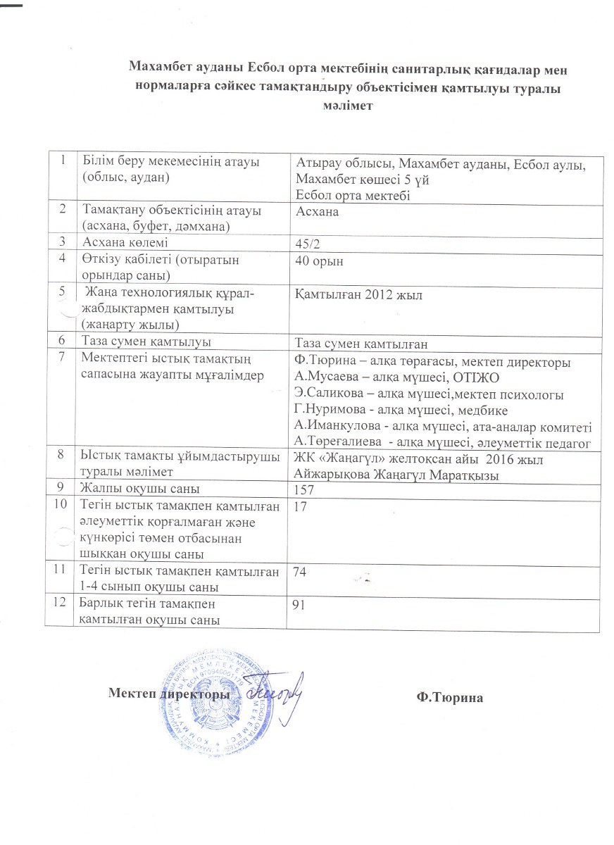 Санитарлық қағидалар мен нормаларға сәйкес тамақтандыру объектісімен қамтылуы туралы мәлімет