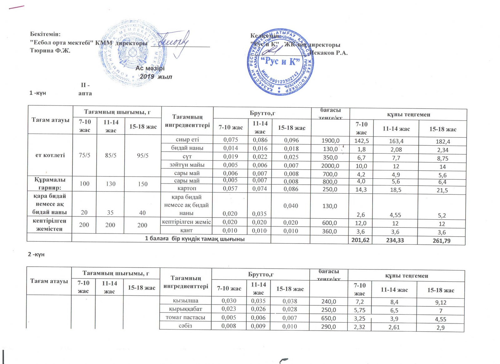 Меню 2 апта