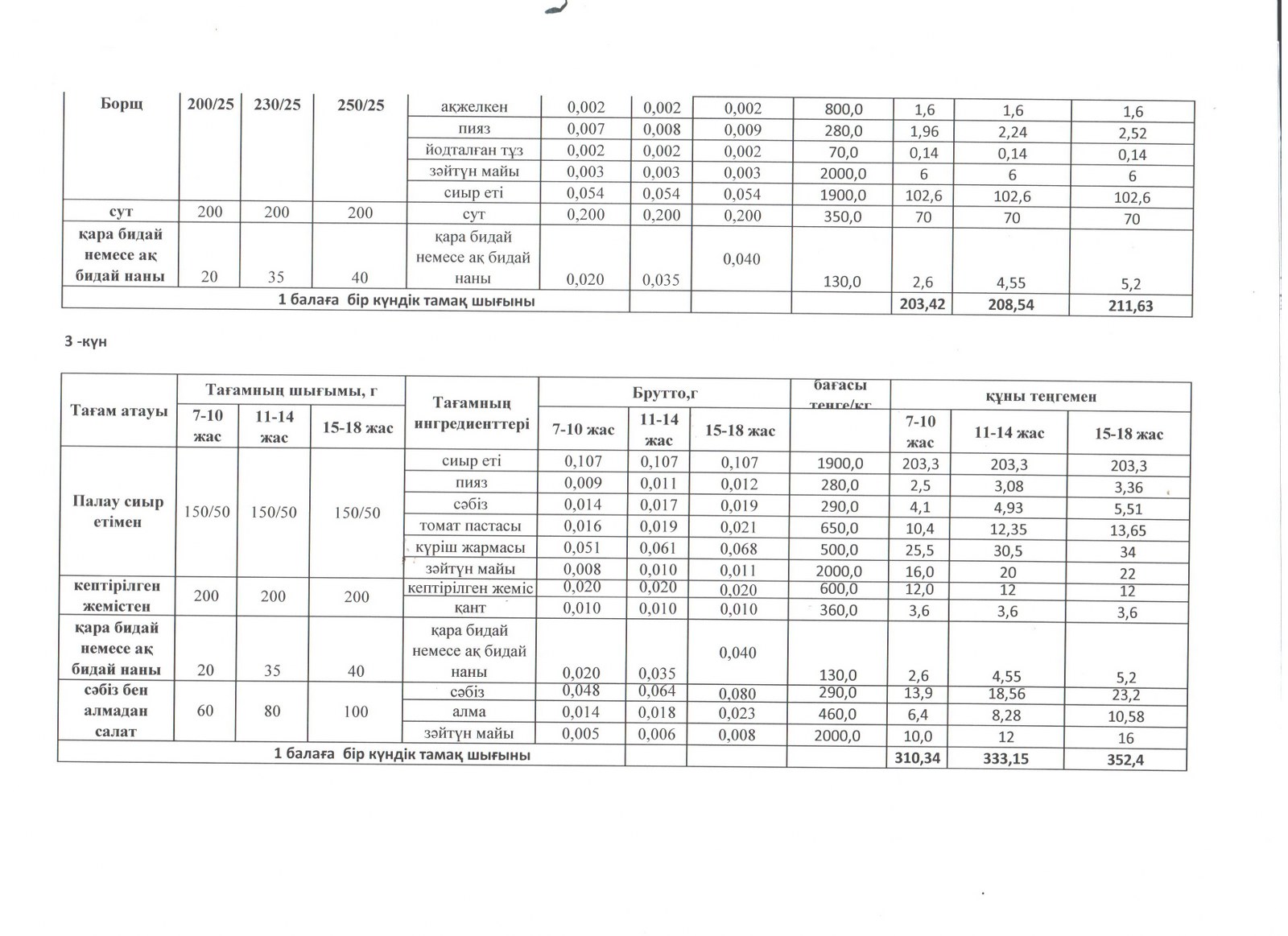 Мектептің тамақтандыру айдары