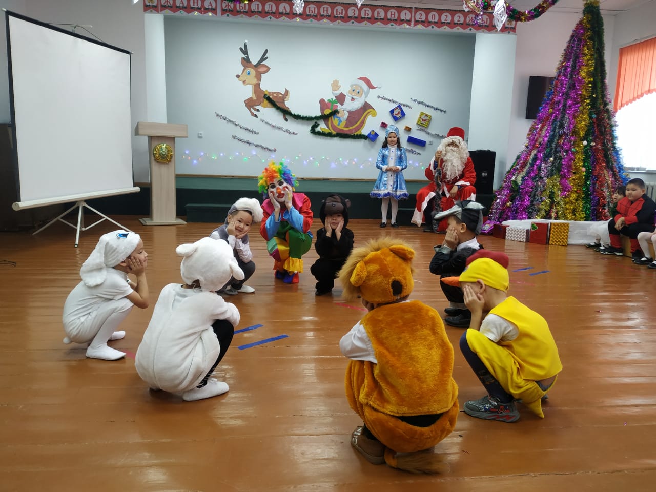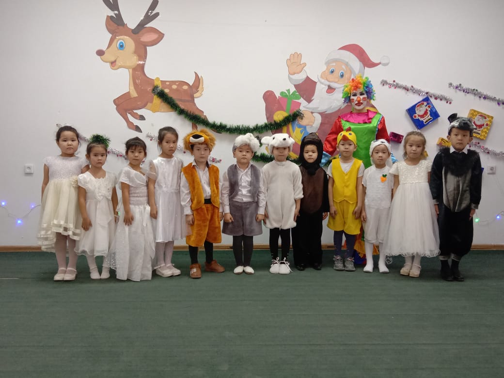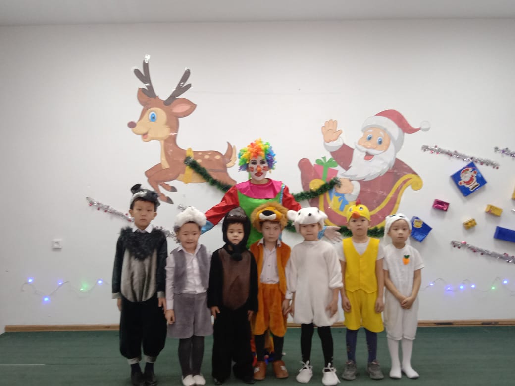 Балалар кешке арналған өлеңдері мен тақпақтарын айтты.Рауан сиқыршы болып, көрермендерге сиқырын көрсетті және шыршаны сиқырлап шырша шамын жаға отырып,шарша ішінен Сайқымазақты шығарды. Сонымен қатар балалар көңілді би билеп, өздерінің Аяз атамен ақшақарға арнаған таппақтарын айтты.Сайқымазақпен ойын ойнады. Балалардың асыға күткен Аяз атасы мен Қарша қызы және ескі жыл мен жаңа жыл келіп,балаларға деген жүрекжарды тілектері мен жеткен жетістіктері туралы айтып өтті және балалар жаңа жыл мерекесіне жақсы көңіл-күймен қаттысты.